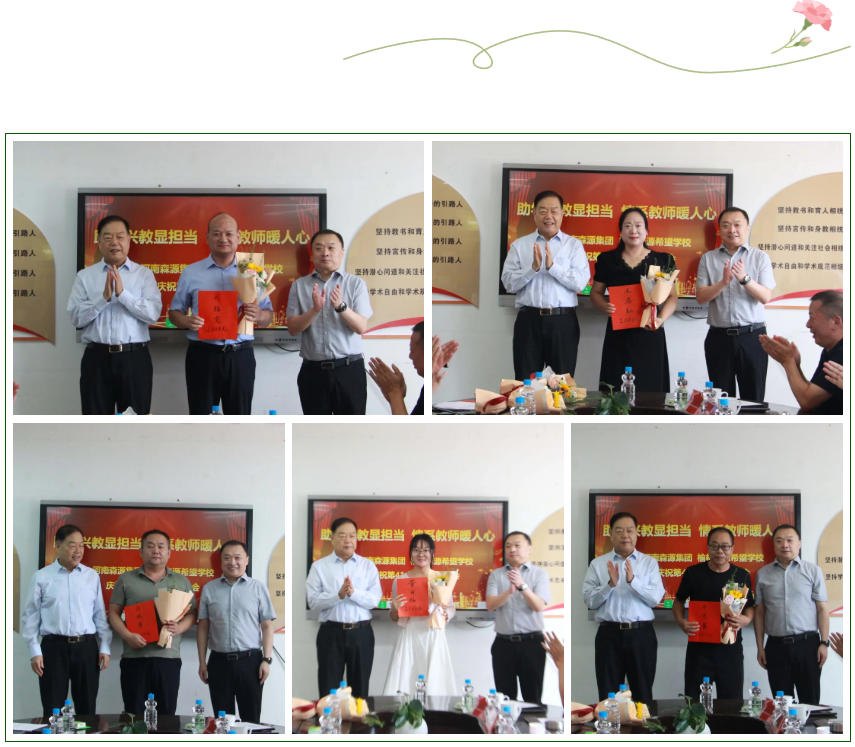 森源集團黨委書記、榆林森源希望學校基金會理事長楚金甫向老師們送上節(jié)日的祝福,并借此機會,向榆林森源希望學校表示祝賀。在老師們的不懈努力下,學校的教學成績得到穩(wěn)步提升、學生的綜合素質(zhì)得到全面發(fā)展,并且獲得多項榮譽,老師們的工作值得肯定。同時,他向老師們表示感謝,學校有著一支充滿愛心的教師隊伍,取得驕人成績的背后是老師們無數(shù)個日夜的澆灌,感謝老師們對榆林森源希望學校教育事業(yè)的付出。今后,在黨委政府的支持下,在學校老師們一如既往的努力下,希望學校能夠取得更多更大的成績,桃李滿園、芬芳永遠,不辜負榆林父老鄉(xiāng)親的重托。